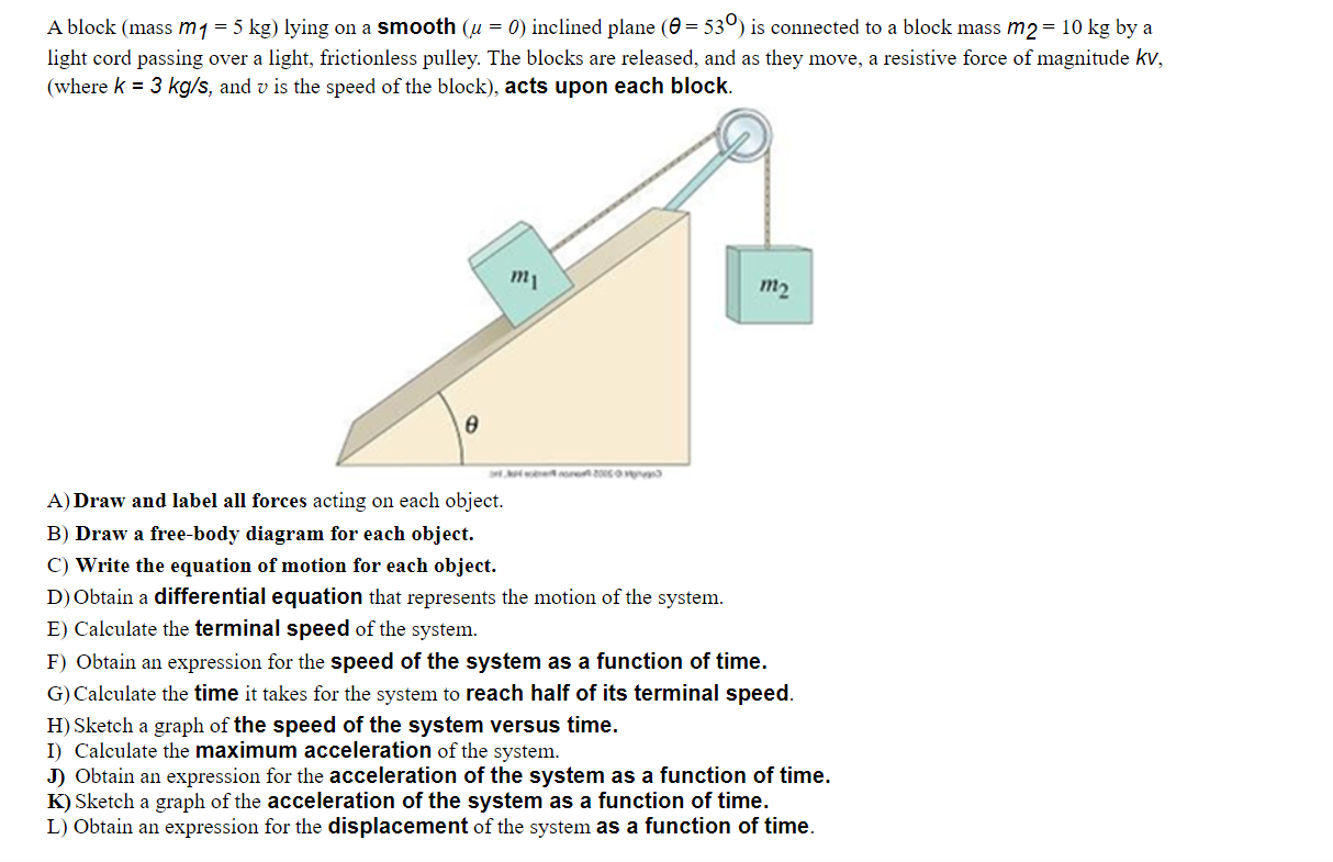 A Block Of Mass M1 3 70kg On A Frictionless Plane Inclined At Angle Youtube